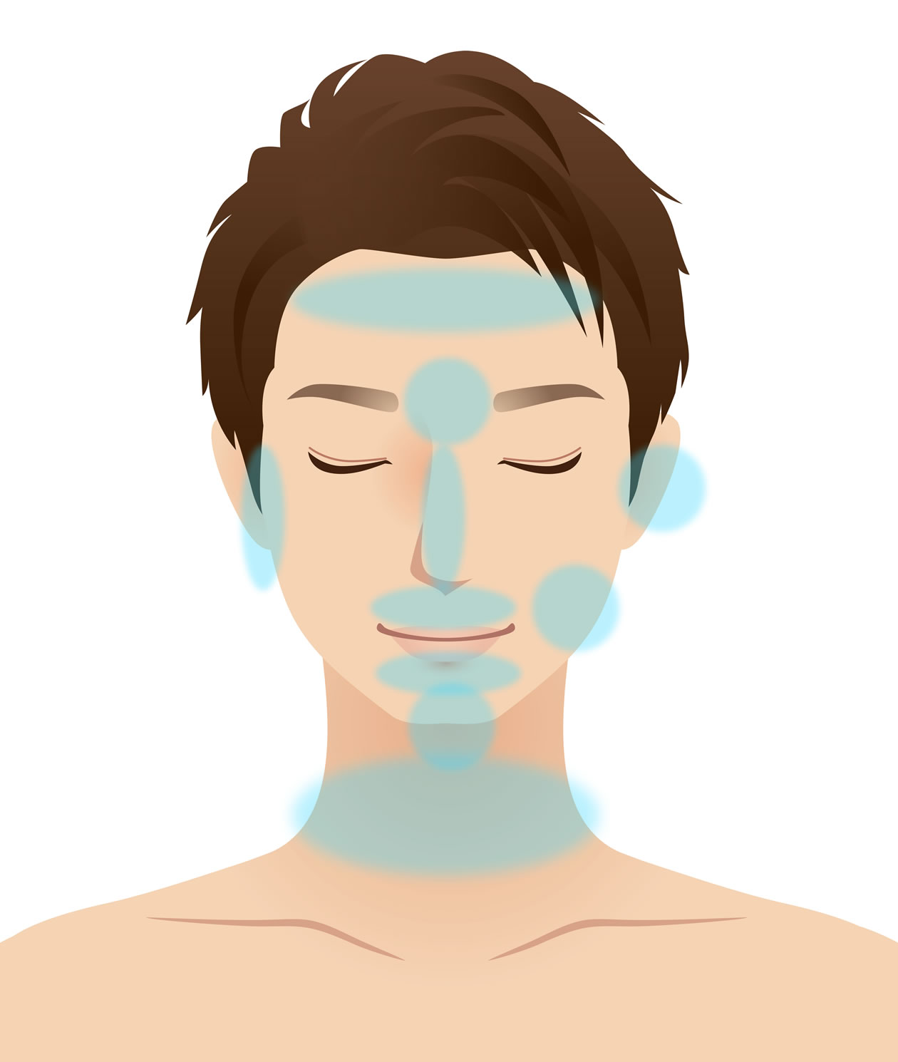 ①鼻下 ②顎 ③顎下 ④首 ⑤頬 ⑥もみあげ ⑦おでこ ⑧耳毛 ⑨鼻 ⑩眉間 ⑪口唇下